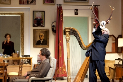 Cette mécanique s’éraille parfois, et l’inquiétant surgit alors, quand le sang coule d’un nez ou sur une main, quand les corps chutent au sol, ou quand un vase est violemment éclaté sur un visage. De même, des apartés soulignés par des atmosphères plus sombres font entendre des confidences, des révélations ou des rêves, en décalage complet avec ce qui a lieu sur scène, et font atteindre à autre chose, donnent une autre dimension à la représentation, avant que ces ouvertures ne soient rebouchées par un nouveau gag. L’intrigue disparaît derrière le fonctionnement instable du langage et les jeux scéniques, ce qui a pour effet de déplacer les affrontements de l’extérieur à l’intérieur. Les personnages apparaissent alors comme des pantins soumis à leurs instincts et à leurs inconscients, en lutte avec le monde et avec eux-mêmes plus qu’avec les autres.