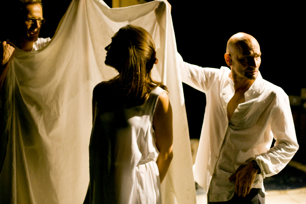 Mais en réalité, peu importe, car ce qui se dégage d’une partie à l’autre, ce qui reste malgré la dérive du spectacle, et ce qui compte véritablement, c’est le théâtre lui-même. Les trois comédiens sont impressionnants, à commencer simplement par leur polyglottisme. Tous trois Flamands, deux jouent en français, et un en anglais. Ce décalage dans la langue ne les empêche pas de se comprendre et de renchérir, il devient au contraire un nouvel espace de jeu pour les trois, dans la porosité qui s’installe entre les phrases, dans les passages d’une langue à l’autre. Ce qui pourrait apparaître comme une difficulté, une faiblesse, a pour effet d’ajouter encore au plaisir qu’ils trouvent et communiquent à jouer tous les trois. La relation qui les unit est sensible, tout comme l’écriture commune qui se trouve à l’origine du spectacle.